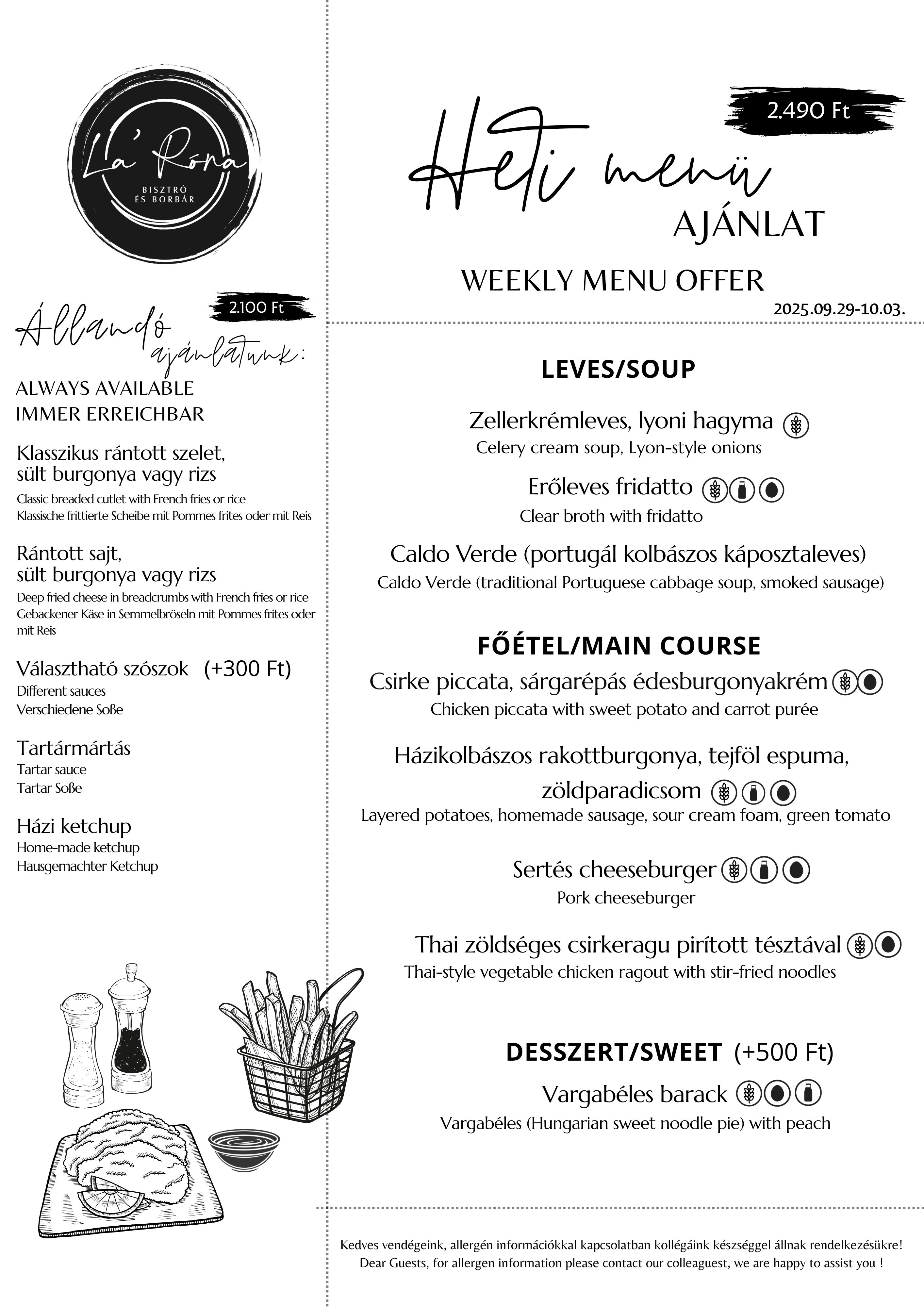 Foglalás onlineÜdvözöljük a La' Róna Bisztró és Borbár világában!